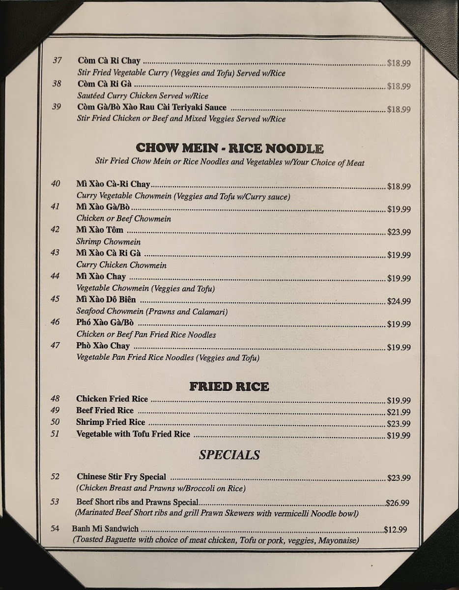 Rice vermicelli with stir-fried lemongrass beef or chicken.